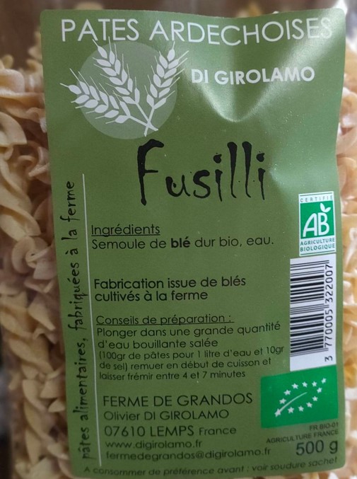 Accueil / Epicerie / Fusilli (AB) Fusilli (AB)2,90 € 500g 13 en inventaire quantité de Fusilli (AB) Ajouter au panier Catégorie: Epicerie Description Avis (0) Description Ferme de Grandos (AB) – Lemps Avis Il n’y pas encore d’avis. Soyez le premier à laisser votre avis sur “Fusilli (AB)” Annuler la réponseVotre adresse e-mail ne sera pas publiée. Les champs obligatoires sont indiqués avec *Nom * Courriel * Votre note * Taux… Parfait Bon Moyen Pas mal Très mauvais Votre avis * Enregistrer mon nom, mon e-mail et mon site dans le navigateur pour mon prochain commentaire. Produits similaires Epicerie Pois chiche sec (AB) 1kg Poids total : 1000 g - 0 + Epicerie Crème de marrons Nature Poids total : 390 g - 0 + Epicerie Caviar d’aubergines Poids total : 228 g - 0 + Epicerie Gaspacho Poids total : 1000 g - 0 +